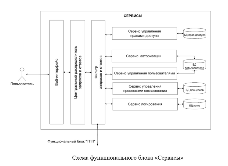 - функциональный блок «Сервисы» ‒ ПО, реализующее группу функций обеспечения доступа к функциональности Системы;